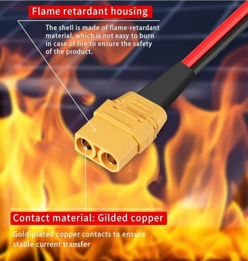 Acest cablu de extensie este proiectat special pentru a conecta panourile solare pliabile RONIC de 200W și 400W la stațiile portabile de curent echipate cu port de încărcare solară DC cu mufă XT60 tată.